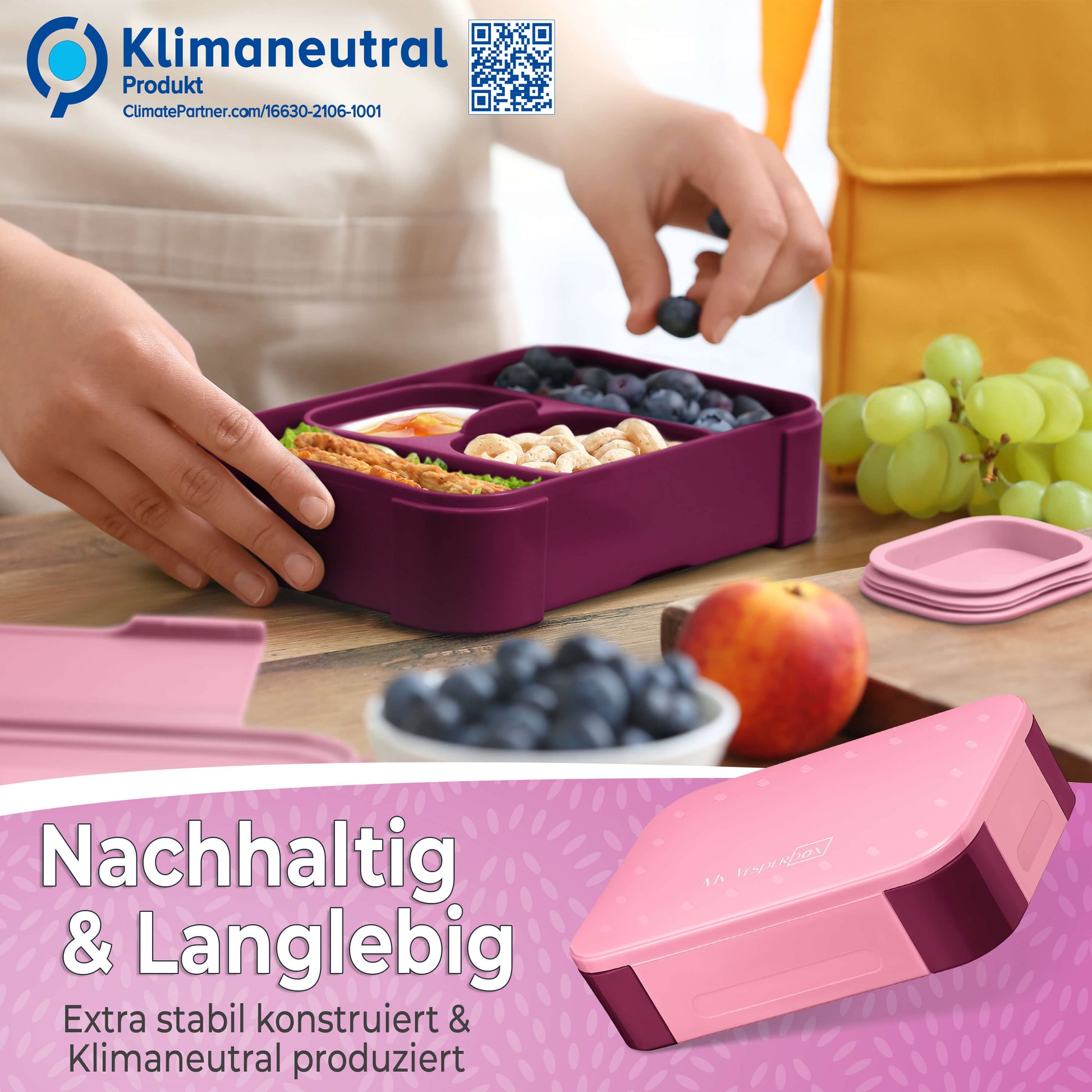 1 bis 4 praktische Unterteilungen halten Snacks sauber getrennt und frisch – ideal für eine bunte, ausgewogene Ernährung.