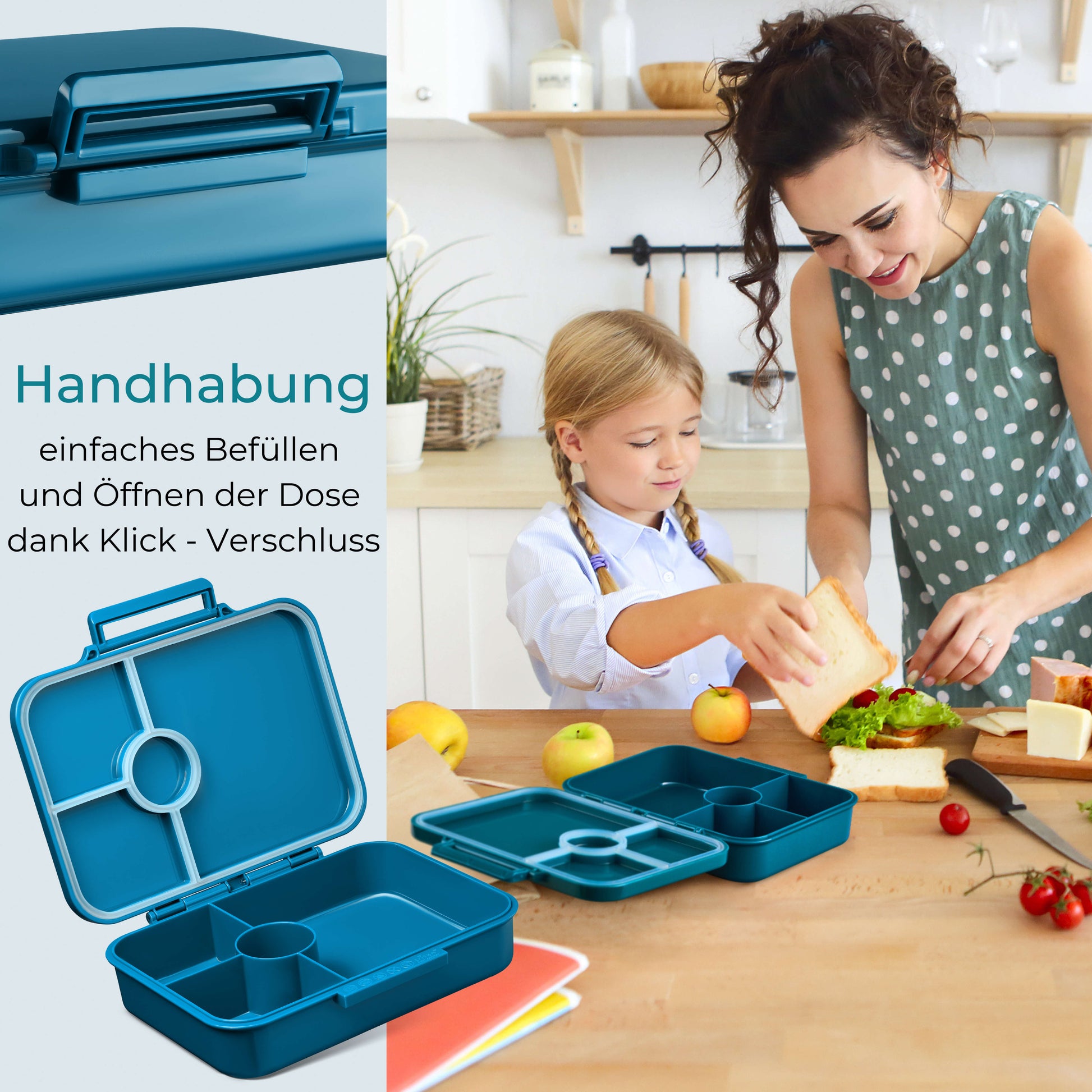 Bento Box „Bia“: 4 Fächer + 1 variables Fach, auslaufsicher, leicht zu reinigen, ideal für Brotdose auslaufsicher & Bento Box Kinder.